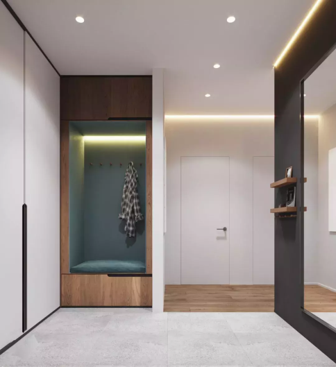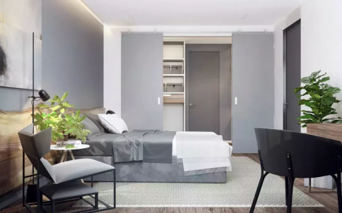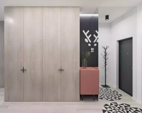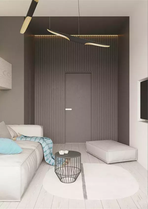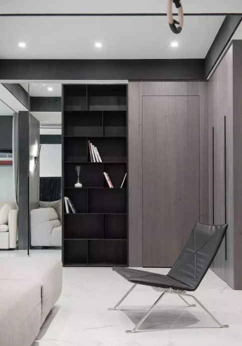 帶有衣帽柜、儲(chǔ)物柜等擁有貯藏性能的空間,是隱形門最常顯現(xiàn)的地區(qū)。將它們和門的色彩融為一體,在空間視覺上,起到了較好的協(xié)作成效。