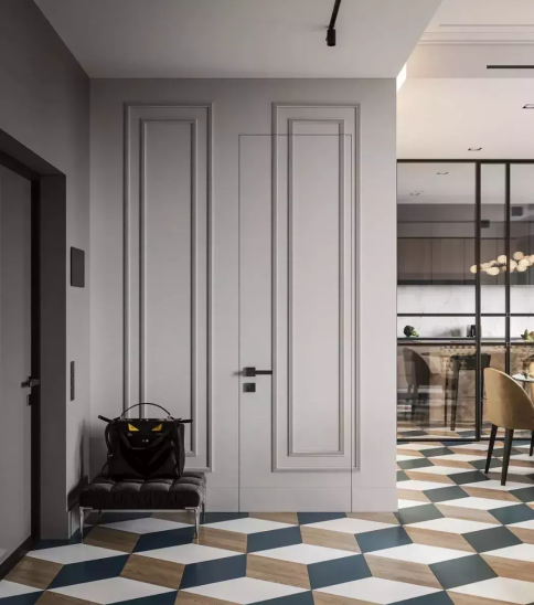 最為常見的一種隱形門就是與白墻、壁紙或油漆彩繪一致。如此的“隱形門”,不單最簡潔、造價(jià)上面也較廉價(jià),可以確保和墻面有絕對的視覺統(tǒng)一感。